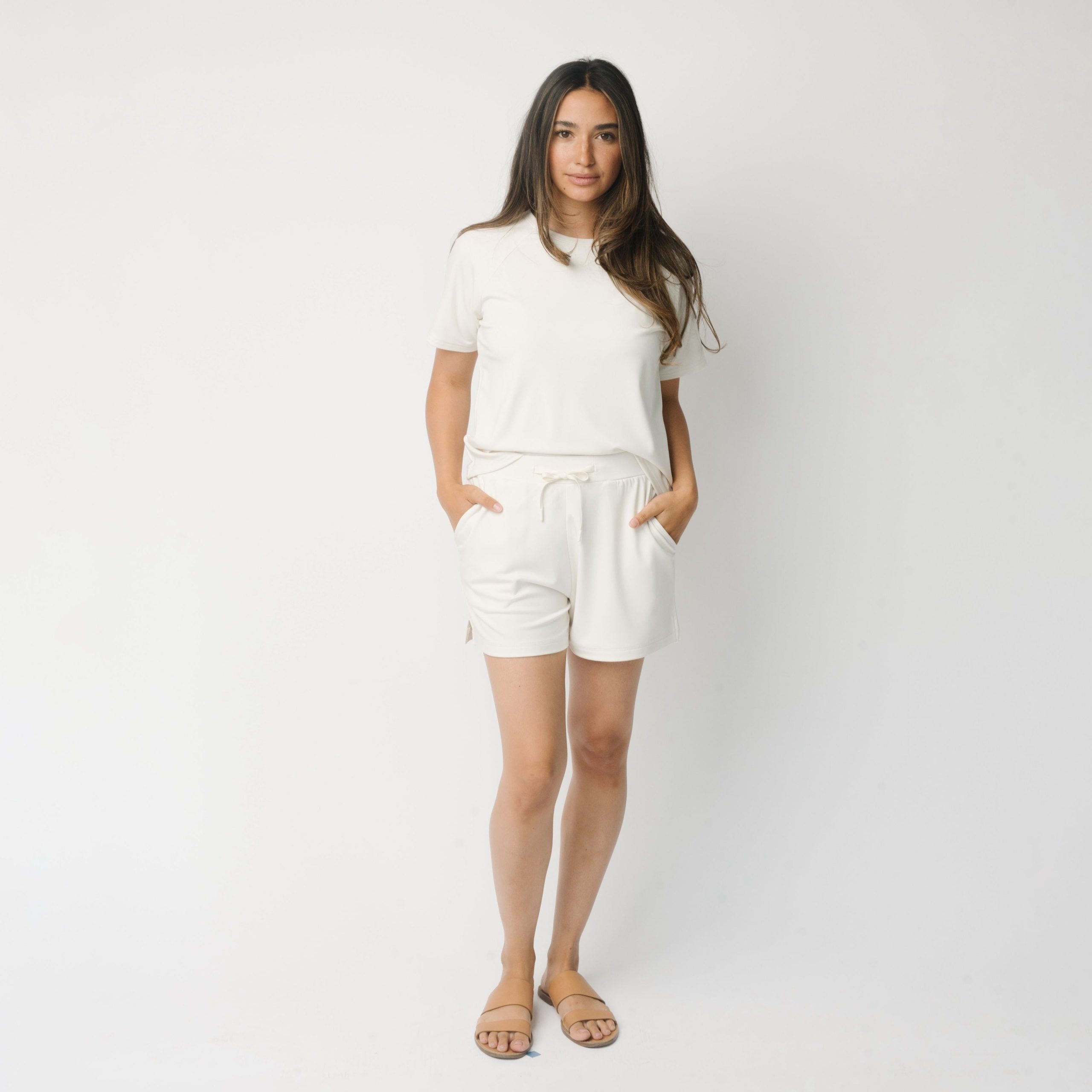 Dressing for warm summer days is a breeze with our mid-rise Women’s Brushed Bamboo Shorts. This silhouette was made to flatter with a three-inch inseam and two-inch side slits for enhanced movement. Topped off with a super soft bamboo viscose finish. a drawstring elastic waist. and two pockets. Grab and go all season long with your new favorite shorts.